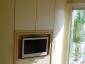 In der oberen Etage befindet sich ein Schlafraum mit zwei Boxspringbetten (90x200 cm) und Balkon zur Seeseite hin. Im geräumigen Kleiderschrank ist außerdem ein Flachbildfernseher integriert, so dass sie entspannt vom Bett aus fernsehen können.